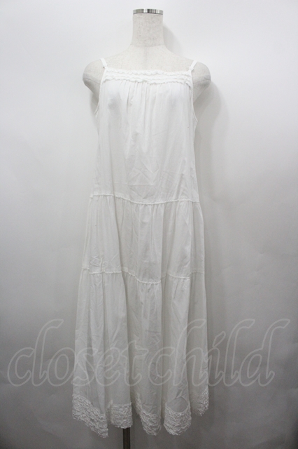 PINK HOUSE / 裾ピコフリルロングキャミワンピース 白 I-26-04-06-075-LO-OP-SA-ZI