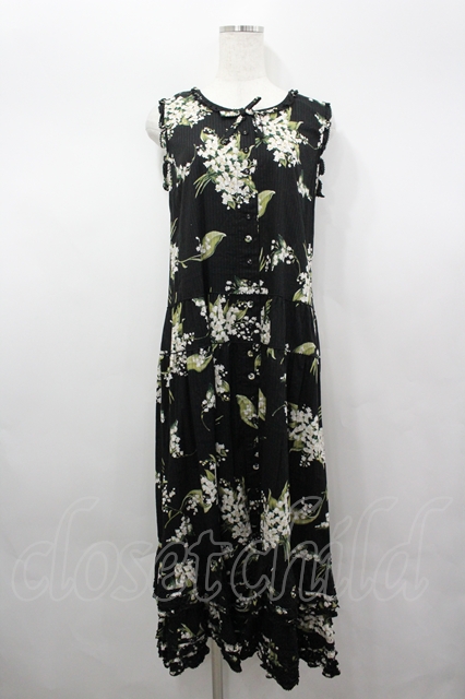 PINK HOUSE / すずらんプリントノースリーブワンピース 黒 I-26-04-06-084-LO-OP-SA-ZI