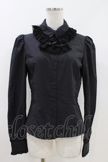 Moi-meme-Moitie / バラスカラップレースタイ付ブラウス ブラック H-26-04-12-1015-MO-BL-KB-ZH [戻る]