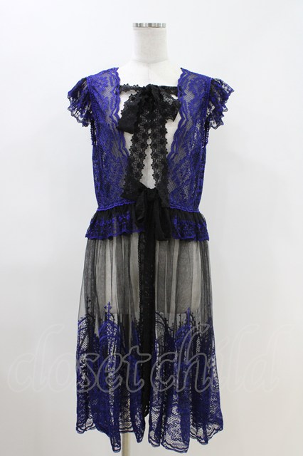 Moi-meme-Moitie / moi meme moitie baroqueChurch & Roses 〜透き徹る秘めやかに交錯する薔薇園の聖壇〜レースダブリエ 黒×青 H-26-04-12-1013-MO-OP-KB-ZH