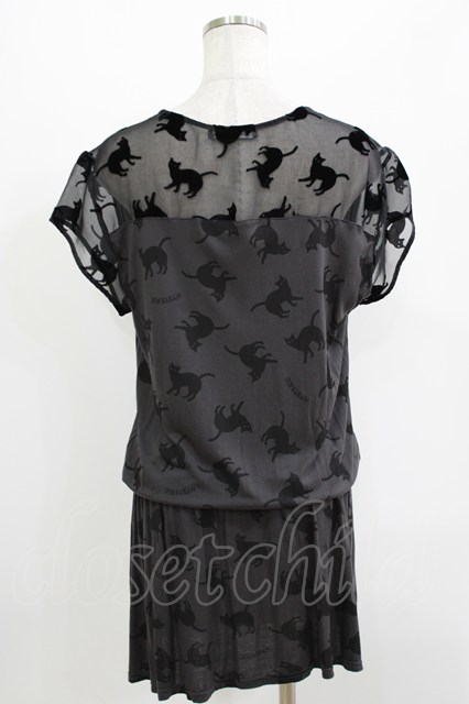 HYSTERIC GLAMOUR / キャットプリントカットワンピース グレー H-26-04-12-028-PU-OP-KB-ZH