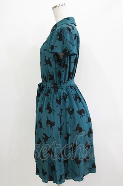 HYSTERIC GLAMOUR / キャットプリントワンピース グリーン H-26-04-12-027-PU-OP-KB-ZH