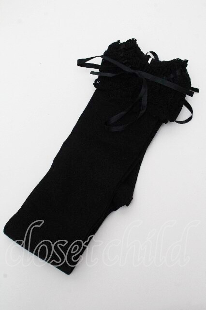 BABY,THE STARS SHINE BRIGHT / リボン通しレースオーバーニーソックス 黒 S-26-04-07-003-BA-ZA-HR-ZS