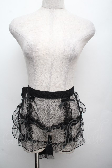 axes femme kawaii / ドットチュールハーフエプロン 黒 S-26-04-07-030-AX-ZA-HR-ZS