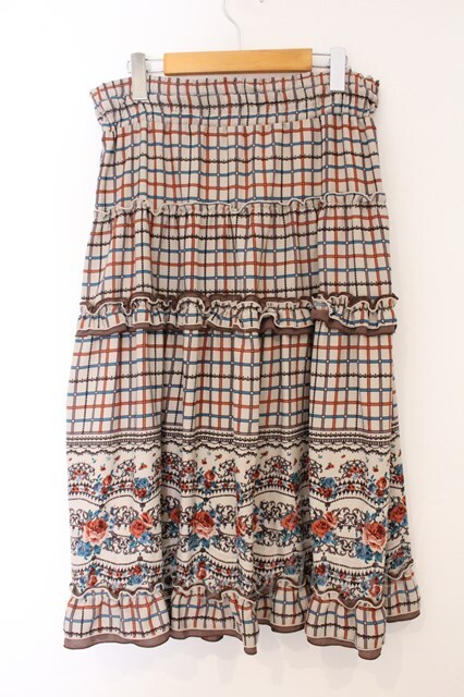 axes femme / パネル柄ロングスカート M ベージュ×ブラウン O-26-04-09-066-AX-SK-IG-OS