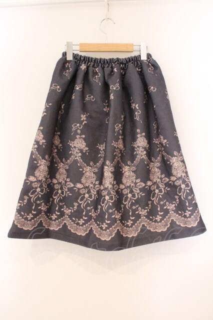 axes femme / リボンプリントスカート ネイビー×ベージュ O-26-04-09-041-AX-SK-IG-OS