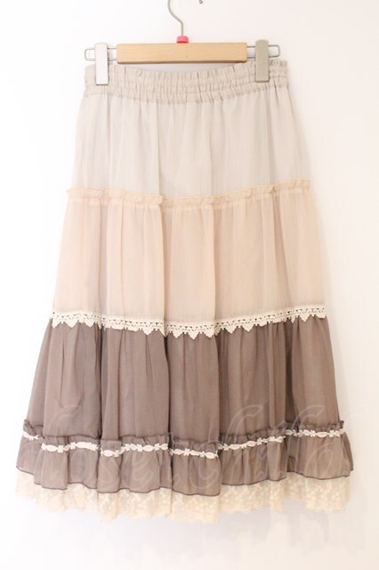 axes femme / 楊柳グラデーションスカート M ベージュ×ブラウン O-26-04-09-069-AX-SK-IG-OS