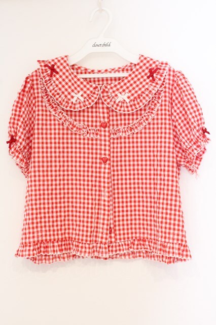 Dark Star Island / ギンガムチェックブラウス L アカ O-26-04-09-030-LO-BL-IG-OS
