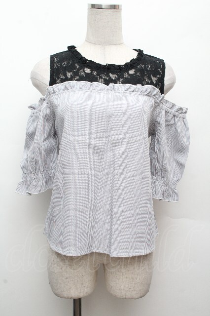 LOLITA / 肩あきチェックトップス サックスx黒 S-26-04-09-010-LO-TO-HR-ZS