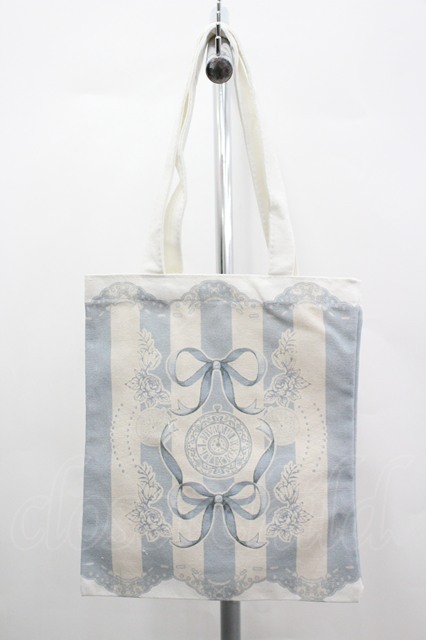 LOLITAその他(お買取対象外) / リボン時計ストライプ柄トートバッグ サックスXアイボリー I-26-04-08-041-LO-BG-SA-ZI
