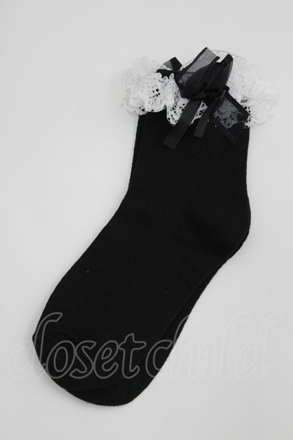 Hoshibako Works / レースリボンソックス 黒X白 I-26-04-08-128-LO-ZA-SA-ZI