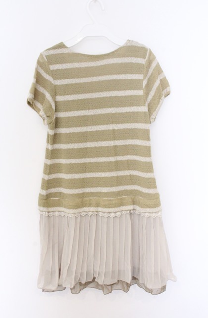 axes femme / シフォンプリーツボーダーワンピース グリーン O-26-04-10-010-AX-TO-IG-OS