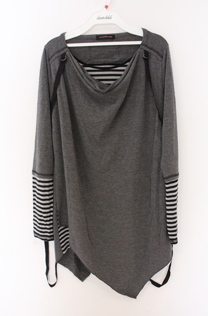 ALGONQUINS / ボーダーレイヤードアシンメトリーカットソー F グレーxブラックxホワイト O-26-04-10-002-AL-TO-YM-OS