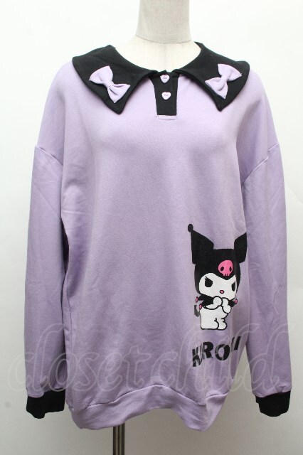 サンリオ / リボン襟クロミプリントプルオーバー ラベンダーx黒 S-26-04-10-014-EL-TO-HR-ZS