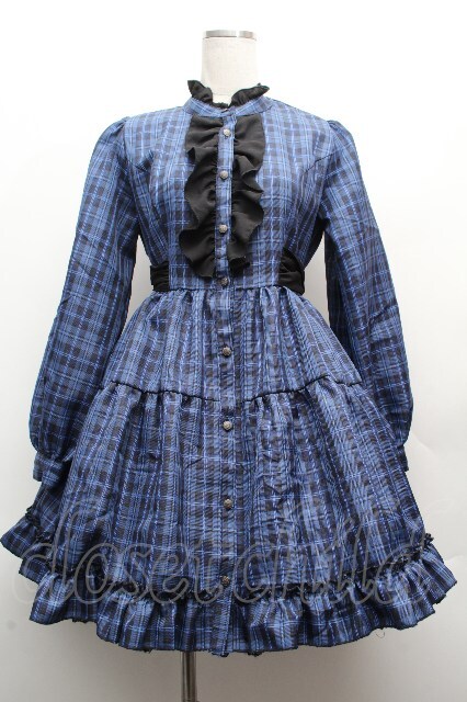 NIBBLE POISON / チェックフリルシャツワンピース ブルー S-26-04-10-036-0-PA-HR-ZS [戻る]