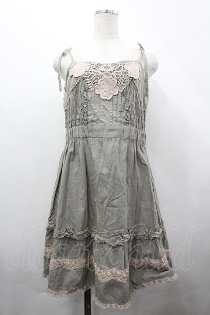 axes femme / レースフリルキャミワンピース カーキXベージュ I-26-04-10-059-AX-OP-SA-ZI