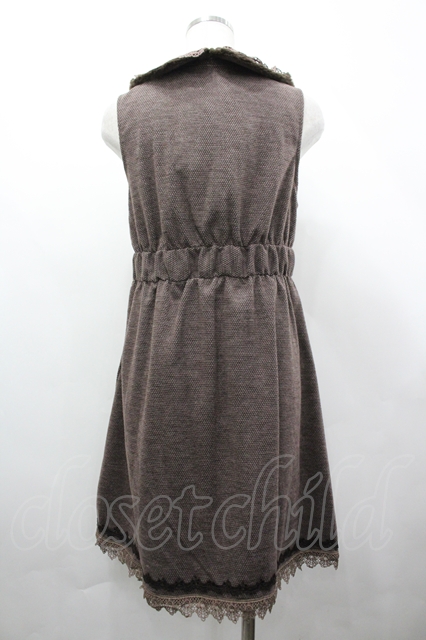 axes femme / ファーxツイードレトロワンピース M チャ I-26-04-10-053-AX-OP-SA-ZI