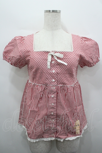 PINK HOUSE / キューピー刺繍ストライプ半袖ブラウス 赤X白 I-26-04-10-009-LO-BL-SA-ZI [戻る]
