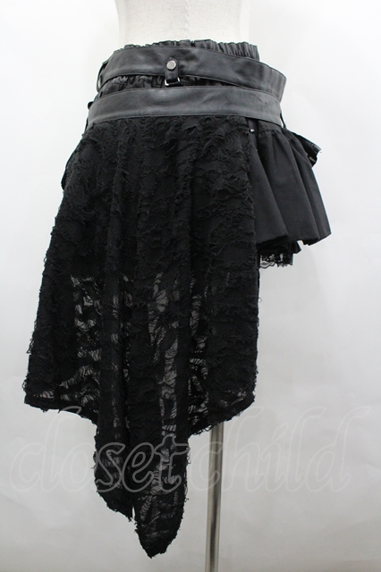 SEX POT ReVeNGe / ダメージフラップストライプフリルミニスカート 黒×シルバー I-26-04-10-075-SP-SK-TE-ZI