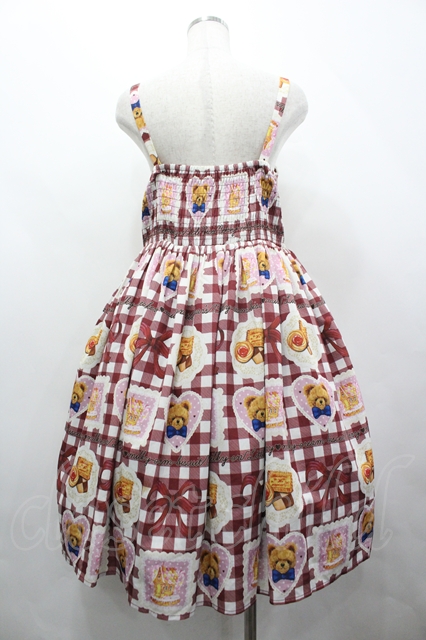 axes femme kawaii / ベアズベーカリー柄ジャンスカ M ボルドー I-26-04-10-071-AX-OP-SA-ZI