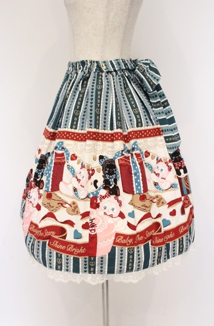 BABY,THE STARS SHINE BRIGHT / ねこくみゃちゃんのHappy Meow Meow Present柄スカート グリーン O-26-04-10-057-BA-SK-OW-OS [戻る]