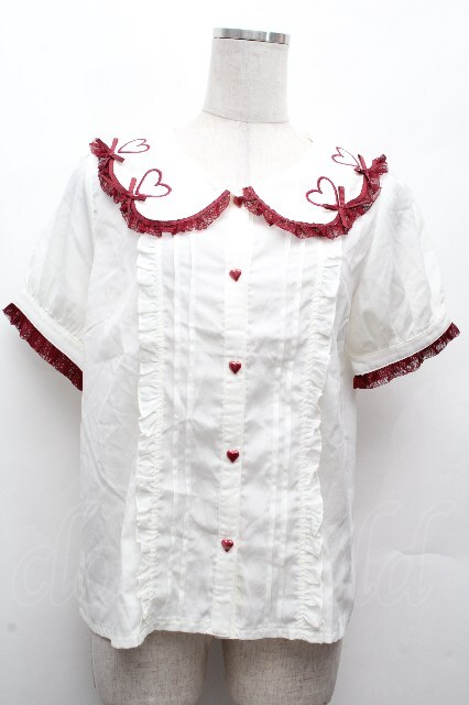 LIZ LISA / ハートスカラップリボンブラウス 白x赤 S-26-04-12-010-LO-BL-HR-ZS