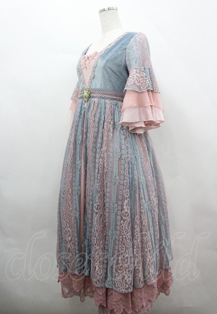 ZJ STORY(海外ロリータブランド) / Sirens Elegy ワンピース M ピンク×エメラルドグリーン I-26-04-12-040-LO-OP-TE-ZI