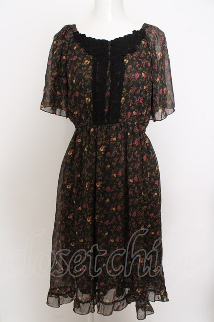 axes femme / フレアスリーブフラワーシフォンワンピース ダークグリーン O-23-10-26-123-AX-OP-IG-ZT072 [2100080000002858-O-23-10-26-123-AX-OP-IG-ZT072]