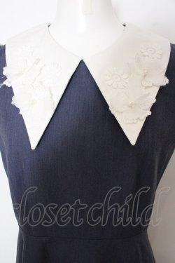 Maison de FLEUR Petite Robe / 水辺に座るワンピース M ネイビー O-23-10-26-153-LO-OP-YM-ZT103