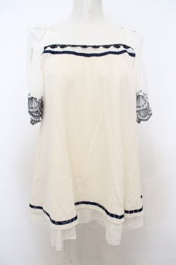 axes femme / シェル刺繍オフショルトップス M キナリ O-23-12-22-089-AX-TO-OW-ZT354 [2100080000008222-O-23-12-22-089-AX-TO-OW-ZT354]