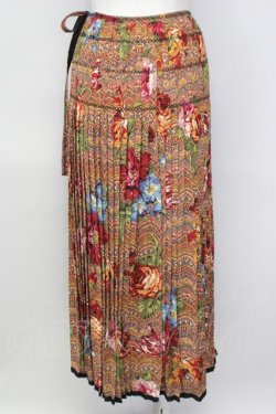 INGEBORG / 手描きフラワー&総柄プリーツスカート S ブラウンX赤X青 T-24-01-21-032-LO-SK-HD-ZT044