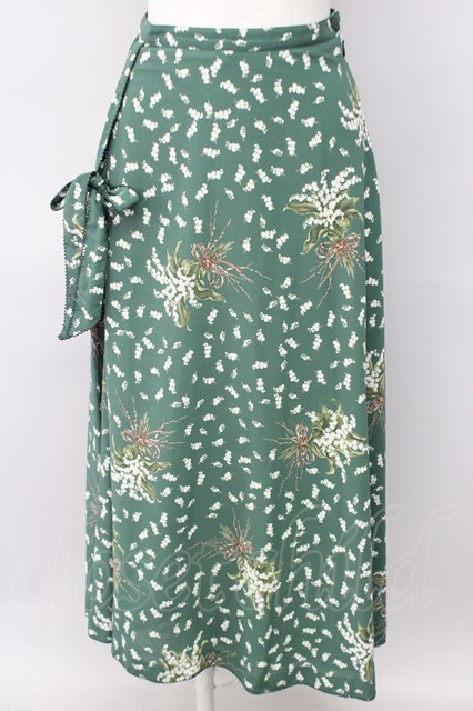 KANEKO ISAO / 鈴蘭総柄たくし上げスカート グリーン T-24-01-21-034-EL-SK-HD-ZT044
