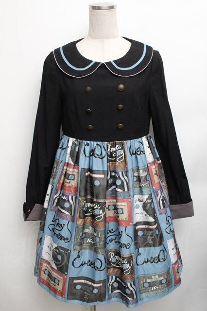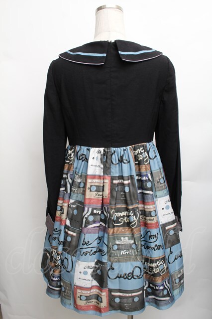 Cute.Q / カセットテープ柄ワンピース 黒Xブルー S-26-01-23-040-EL-OP-SA-ZT157