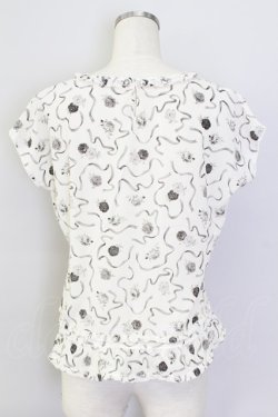 KANEKO ISAO / カメリアリボン半袖ブラウス アイボリーX黒 T-24-02-18-001-EL-BL-HD-ZT355 [2100060000006393-T-24-02-18-001-EL-BL-HD-ZT355]