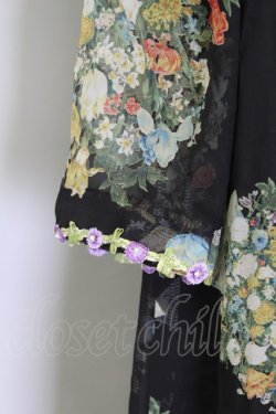 KANEKO ISAO / フラワーブーケリボン長袖ワンピース 黒Xグリーン T-24-02-18-043-EL-OP-HD-ZT360 [2100060000006417-T-24-02-18-043-EL-OP-HD-ZT360]