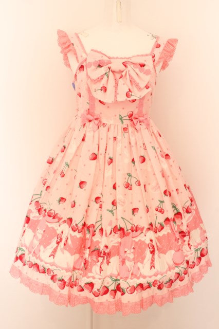 Angelic Pretty / Cherry Berry Bunny胸リボンジャンパースカート ピンク O-24-06-06-022-AP-OP-IG-OS