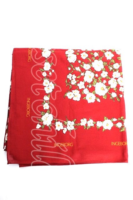 INGEBORG / フラワー大判ストール 赤X白 Y-25-12-12-059-LO-ZA-SA-ZY