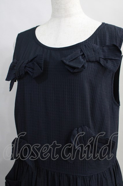 Jane Marple / Dobby cloth front ribbon dress M ネイビー H-24-07-10-1041-JM-OP-SK-ZT219