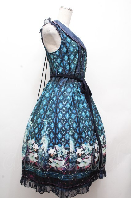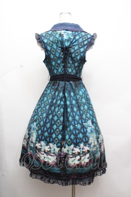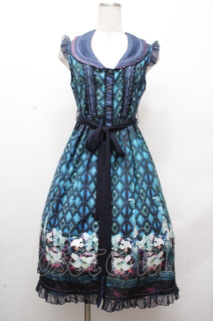 Ozz oneste / 総柄ノースリーブワンピース ブルー S-26-04-20-043-OO-OP-AS-ZS