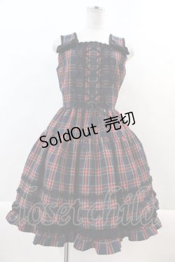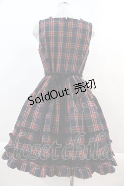 Cornet / フロント編み上げチェックジャンパースカート 黒XネイビーX赤チェック I-24-07-20-042-LO-OP-HD-ZI