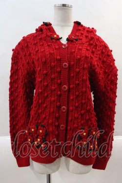 PINK HOUSE / 椿モチーフフードニットカーディガン 赤 I-24-08-30-082-LO-TO-HD-ZT037