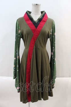 gouk 雅 / 蜜璃甘露のミルキーウェイ柄ワンピース カーキ I-24-09-22-099-GO-OP-HD-ZI [2100060000008103-I-24-09-22-099-GO-OP-HD-ZI]