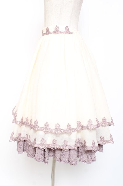 Hinana Queena / 菫の秘め事 裾レーススカート S アイボリー×ラベンダー Y-26-01-20-165-LO-SK-SZ-ZI