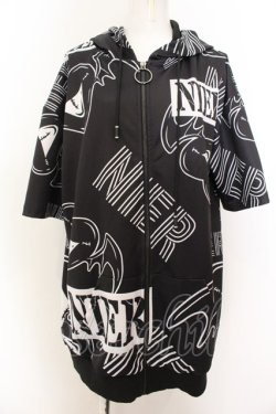 NieR Clothing / 転写pt半袖ZIPパーカー F ハートウイング(ブラック×ホワイト) O-24-12-18-086-PU-TO-OW-ZT259 [2100080000035724-O-24-12-18-086-PU-TO-OW-ZT259]