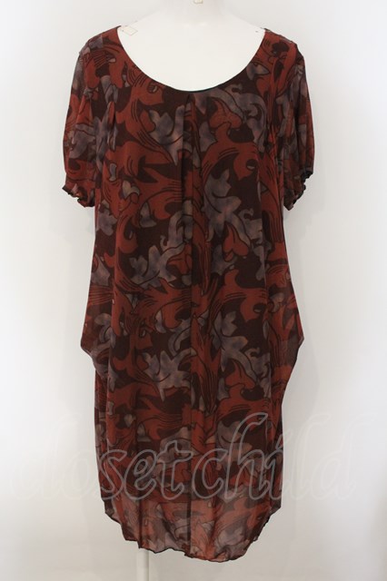 NAOTO SEVEN / 総柄ネットチュニック ブラウン系 O-25-01-13-023-HN-TO-IG-ZT512