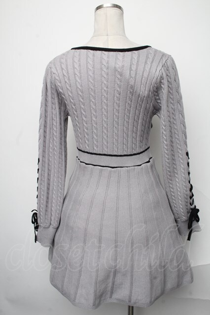 evelyn / バイカラーニットフレアワンピース ブルーグレー S-25-01-17-060-LO-OP-AS-ZT438 [2100020000019554-S-25-01-17-060-LO-OP-AS-ZT438]