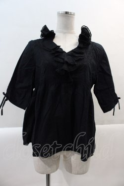 PINK HOUSE / 鈴蘭刺繍Vネックフリルブラウス ブラック I-25-01-20-074-LO-BL-HD-ZT064 [2100060000026059-I-25-01-20-074-LO-BL-HD-ZT064]