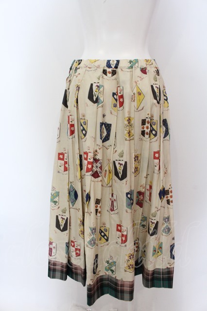 Jane Marple / Flower crestsとタータンチェックタックスカート M ベージュ O-25-02-07-042-JM-SK-OW-OS