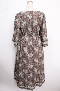 axes femme / ウォールオーナメント柄ワンピース M 茶 Y-25-02-16-183-AX-OP-SZ-ZT448