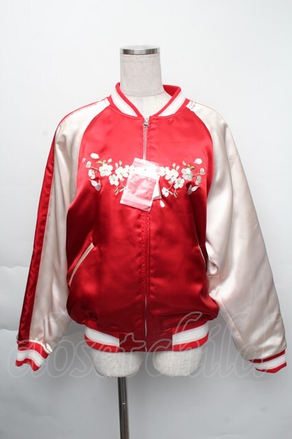 PINK HOUSE / 桜Teddy刺繍使いサテンブルゾン 赤 S-25-12-01-015-LO-JA-SA-ZT127 [2100060000030758-S-25-12-01-015-LO-JA-SA-ZT127]